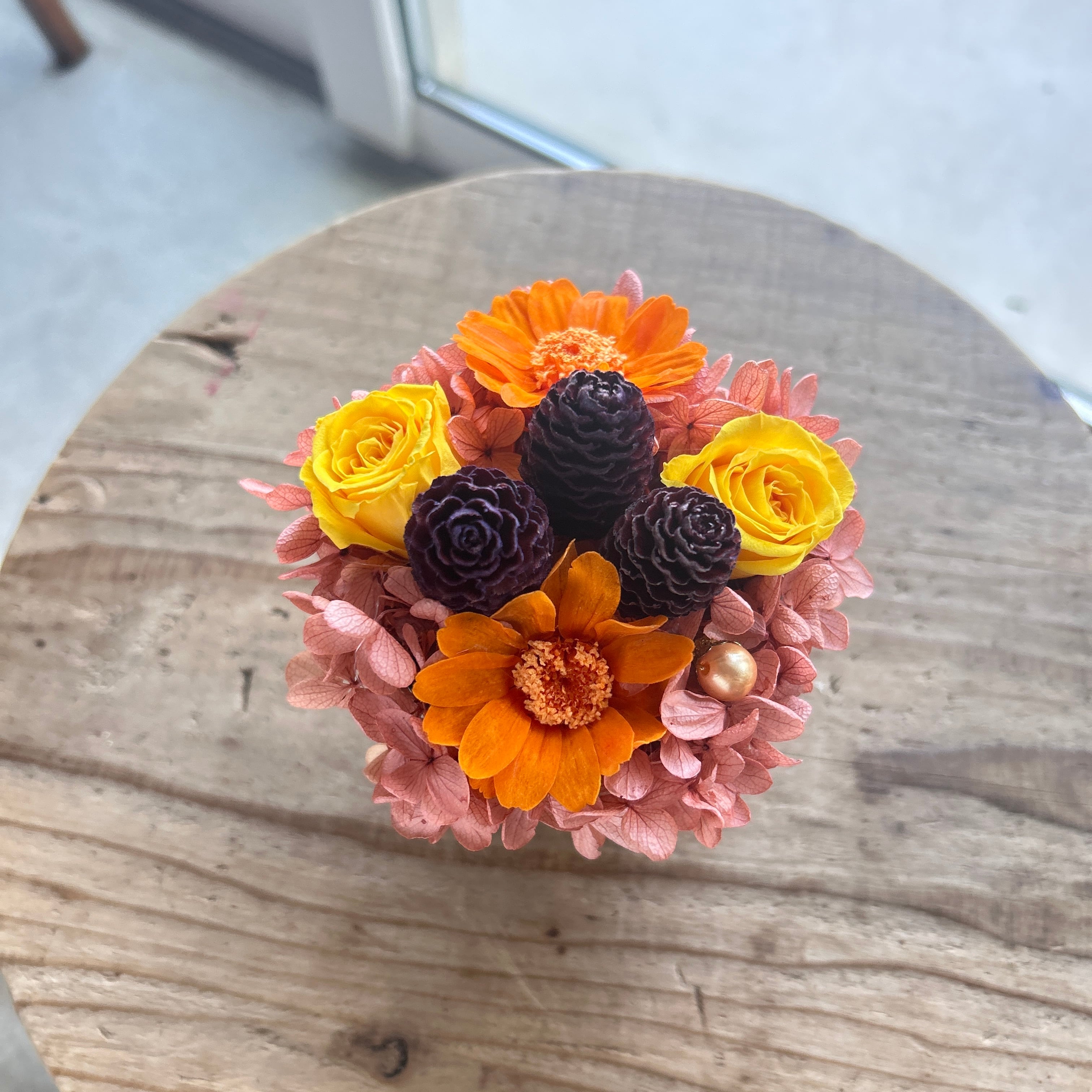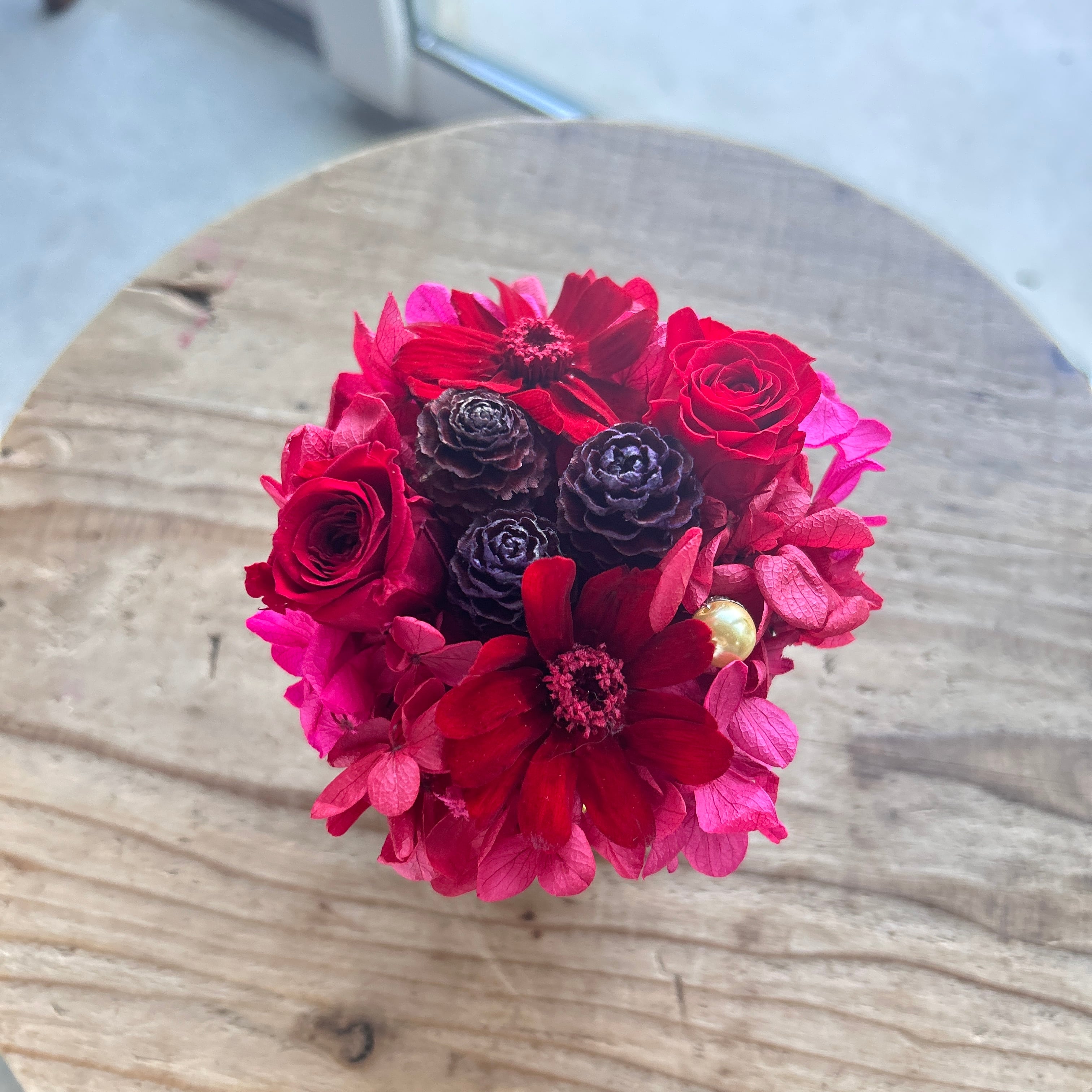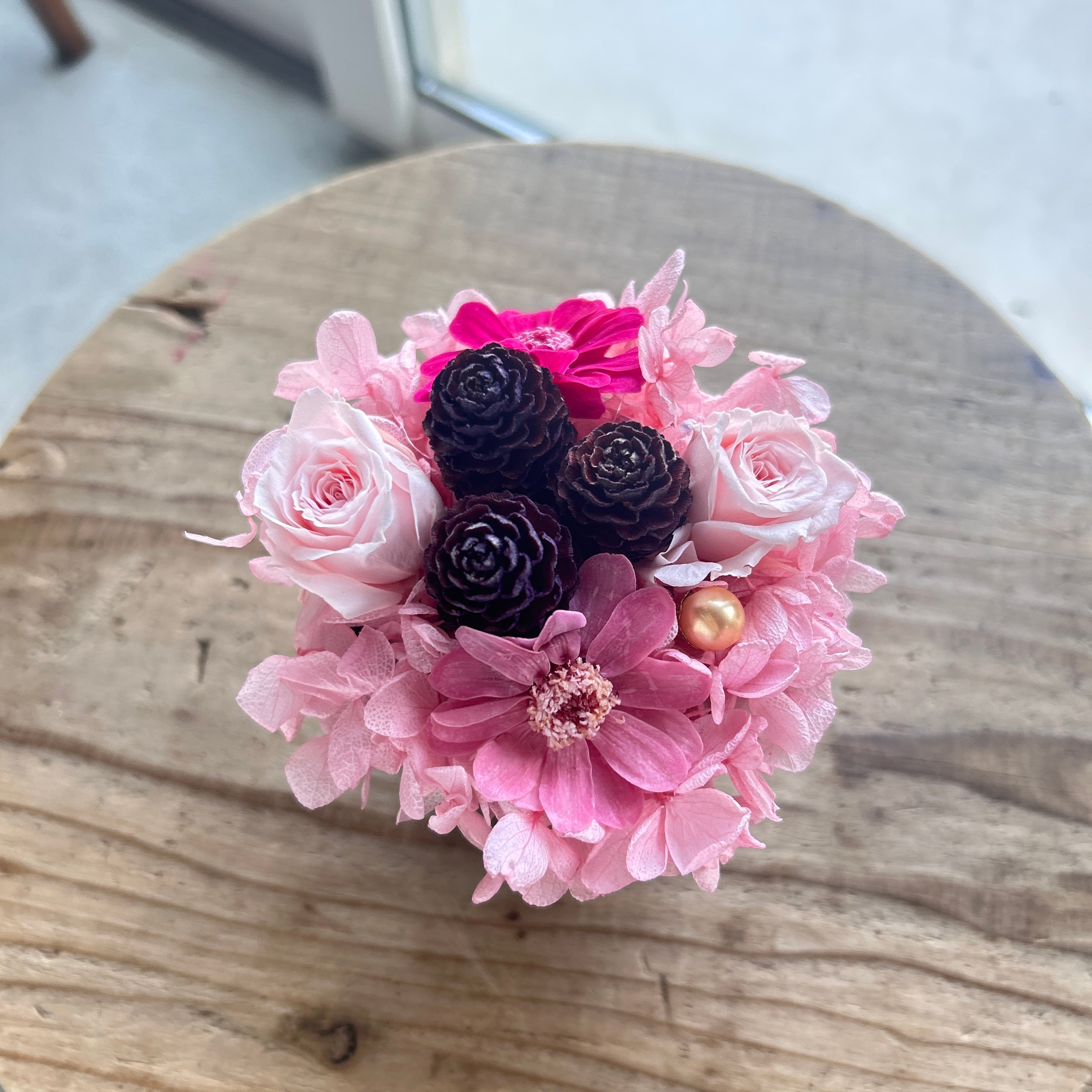 プリザーブドならではの繊細な質感を活かし、飾りやすいサイズに仕上げています。