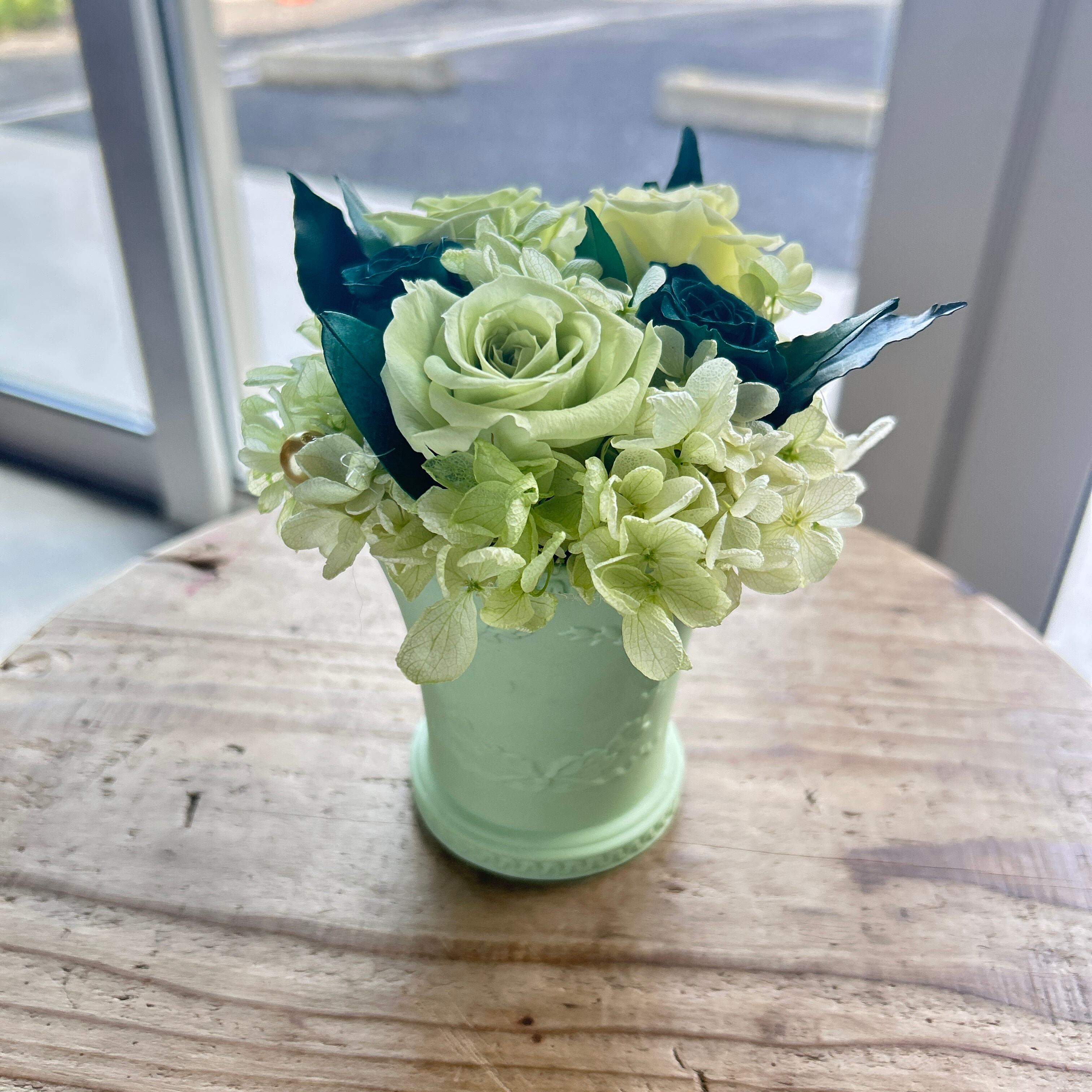 プリザーブドならではの繊細な質感を活かし、飾りやすいサイズに仕上げています。